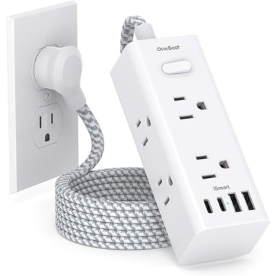 Power Strip Surge Protector - One Beat 6 Widely Outlets with 4 USB Ports (2 USB C), 5 Ft Extension Cord Flat Plug